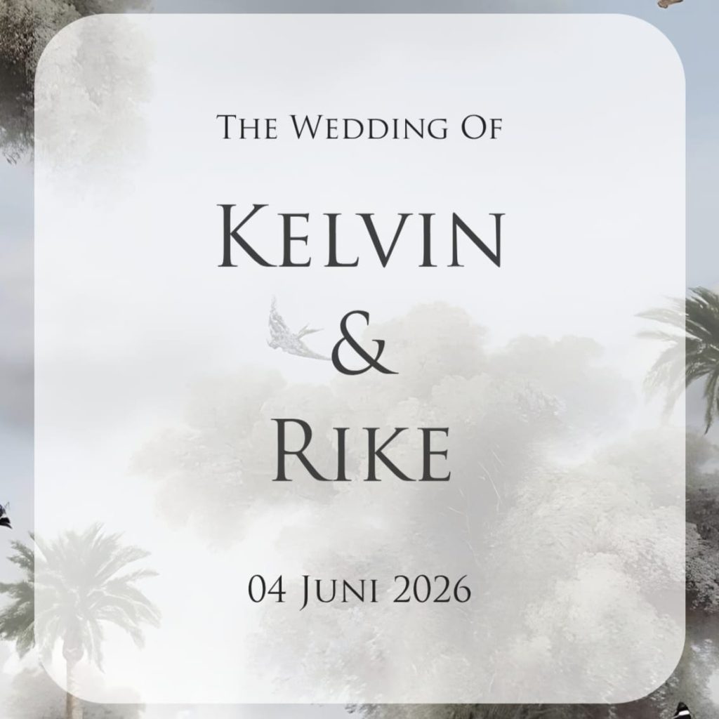 The Wedding of Kelvin & Rike Kepada Bapak/Ibu/Saudara/i : Tamu Undangan Buka Undangan The Wedding of Kelvin & Rike 04 Juni 2026 K R وَمِنْ اٰيٰتِهٖٓ اَنْ خَلَقَ لَكُمْ مِّنْ اَنْفُسِكُمْ اَزْوَاجًا لِّتَسْكُنُوْٓا اِلَيْهَا وَجَعَلَ بَيْنَكُمْ مَّوَدَّةً وَّرَحْمَةً ۗاِنَّ فِيْ ذٰلِكَ لَاٰيٰتٍ لِّقَوْمٍ يَّتَفَكَّرُوْنَ ” Dan di antara tanda-tanda kekuasaan-Nya diciptakan-Nya untukmu pasangan hidup dari […]