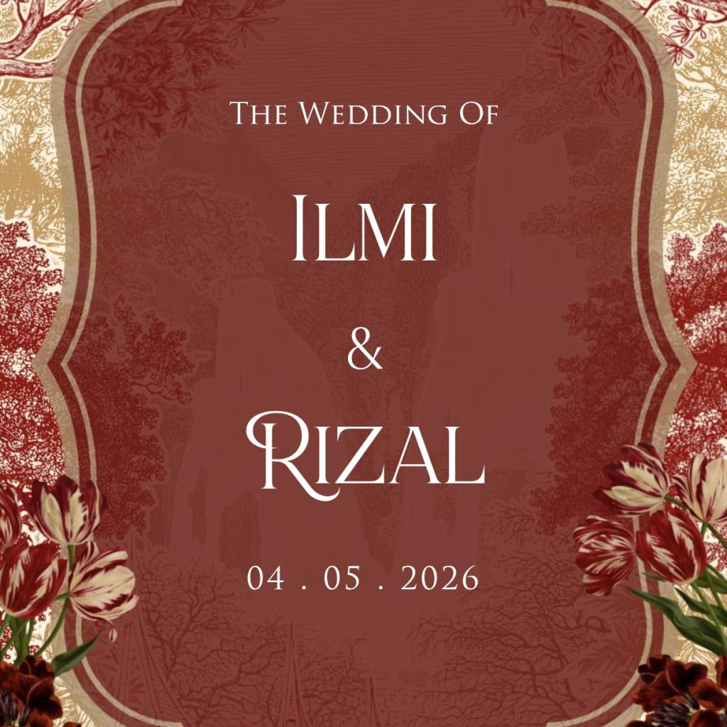 I | R The Wedding Of Ilmi & Rizal Kepada Bapak/Ibu/Saudara/i : Tamu Undangan Buka Undangan The Wedding Of Ilmi & Rizal 04 . 05 . 2026 وَمِنْ اٰيٰتِهٖٓ اَنْ خَلَقَ لَكُمْ مِّنْ اَنْفُسِكُمْ اَزْوَاجًا لِّتَسْكُنُوْٓا اِلَيْهَا وَجَعَلَ بَيْنَكُمْ مَّوَدَّةً وَّرَحْمَةً ۗاِنَّ فِيْ ذٰلِكَ لَاٰيٰتٍ لِّقَوْمٍ يَّتَفَكَّرُوْنَ ” Dan di antara tanda-tanda kekuasaan-Nya diciptakan-Nya untukmu […]